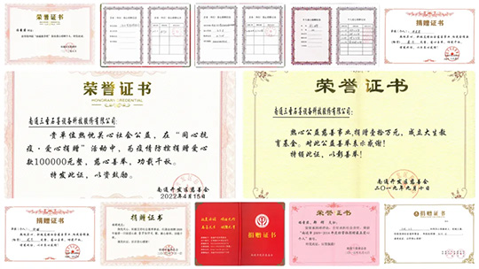 近二十年來,南通三圣企業(yè)集團(tuán)通過設(shè)立專項(xiàng)基金、捐贈(zèng)物資、組織志愿者服務(wù)、參加公益活動(dòng)等多種形式,長期致力于教育助學(xué)、鄉(xiāng)村振興、應(yīng)急救援、環(huán)境保護(hù)、助老助困等領(lǐng)域發(fā)揮自己的光和熱,也曾受到政府各級(jí)的諸多表彰。